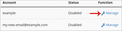 3. From the BoxTrapper Page you can see a list of your emails under the "Account" tab and the status of BoxTrapper (enabled/disabled) under "Status" tab.. "Manage" Link.
